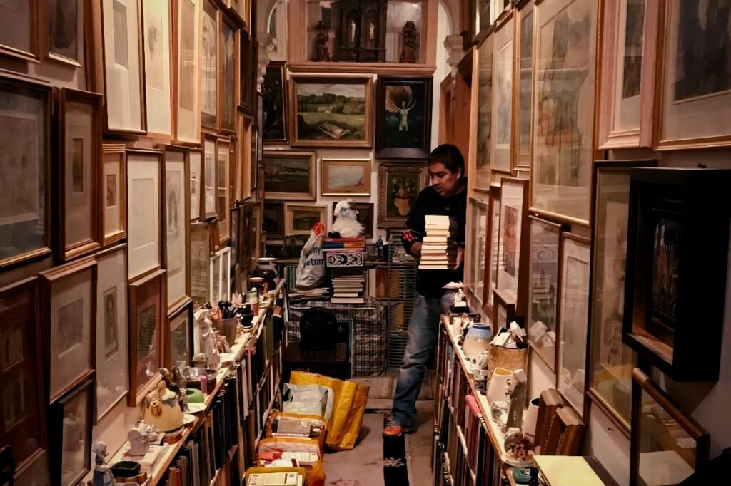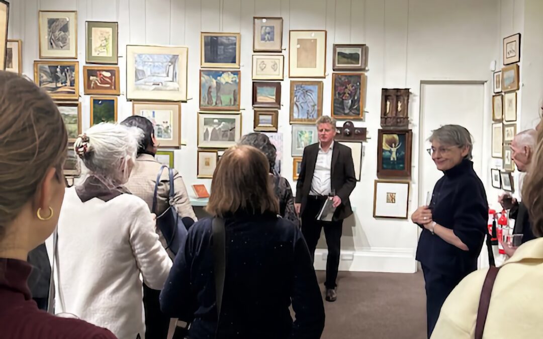“It was this event that made me join Cam Soc.”  “CamSoc does dinners, walks and wine talks brilliantly, but we could do with more art events.”  “I work in tech but art is my passion.”  These were some of the comments from the 35 members who went along to Olympia Auctions on Thursday to see the collection of John Russell Taylor, art and theatre critic for The Times for 40 years before its sale on 11th February.  Adrian Biddell, Head of Paintings for Olympia Auctions, gave a spirited talk about JRT, the “innocuous, gentle genius” who, after a starred First from Jesus, began a career that led him deeply into the world of film and theatre, collecting with his highly trained eye along the way.  Many of his paintings, as Adrian pointed out, look like film sets.  The books, paintings and pots that had once filled JRT’s two-bedroom flat from floor to ceiling made a colourful backdrop to an evening of lively conversation and the Olympia Auctions team were delighted to host us.  Indeed, they’ve just emailed to say we’re welcome back.